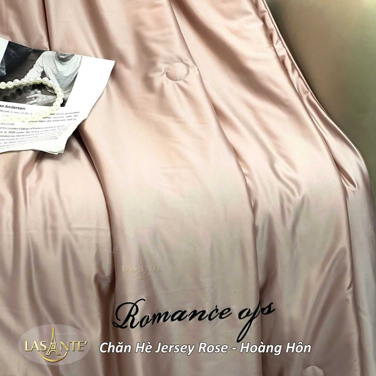 | Chất liệu Jersey | Lụa jersey - dòng chất liệu mới trong các sản phẩm lụa jersey của Lasante (set ga gối, chăn hè thu, khăn lụa). Là sự kết hợp của chất liệu lụa cao cấp mềm mịn kết hợp với sợi jersey - một loại vải dệt kim được cải tiến và sản xuất từ cotton kết hợp với PE và spandex, sử dụng kỹ thuật dệt kim đặc biệt giúp vải có sự óng ả, co giãn tối ưu và không bị cuộn mép. |