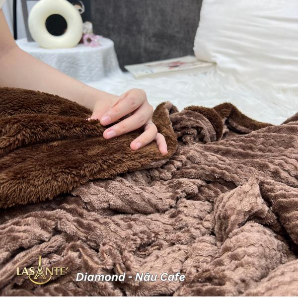 | Chăn 2 lớp | Chăn Thu Lông Cừu 2 Lớp Diamond của Lasante là lựa chọn lý tưởng cho những ngày giao mùa se lạnh. Thiết kế 2 lớp tinh tế với mặt trên lông cừu mềm mịn, họa tiết sang trọng; mặt dưới là lớp lông cừu nâu Choco ấm áp, tạo cảm giác ôm trọn nhưng vẫn thoáng nhẹ, không gây bí. Chăn nhẹ, dễ gấp gọn, vừa để đắp hằng ngày vừa làm điểm nhấn decor cho sofa, phòng ngủ hay homestay. Sự kết hợp hoàn hảo giữa ấm – nhẹ – đẹp, mang đến trải nghiệm thư giãn trọn vẹn trong mùa thu. |