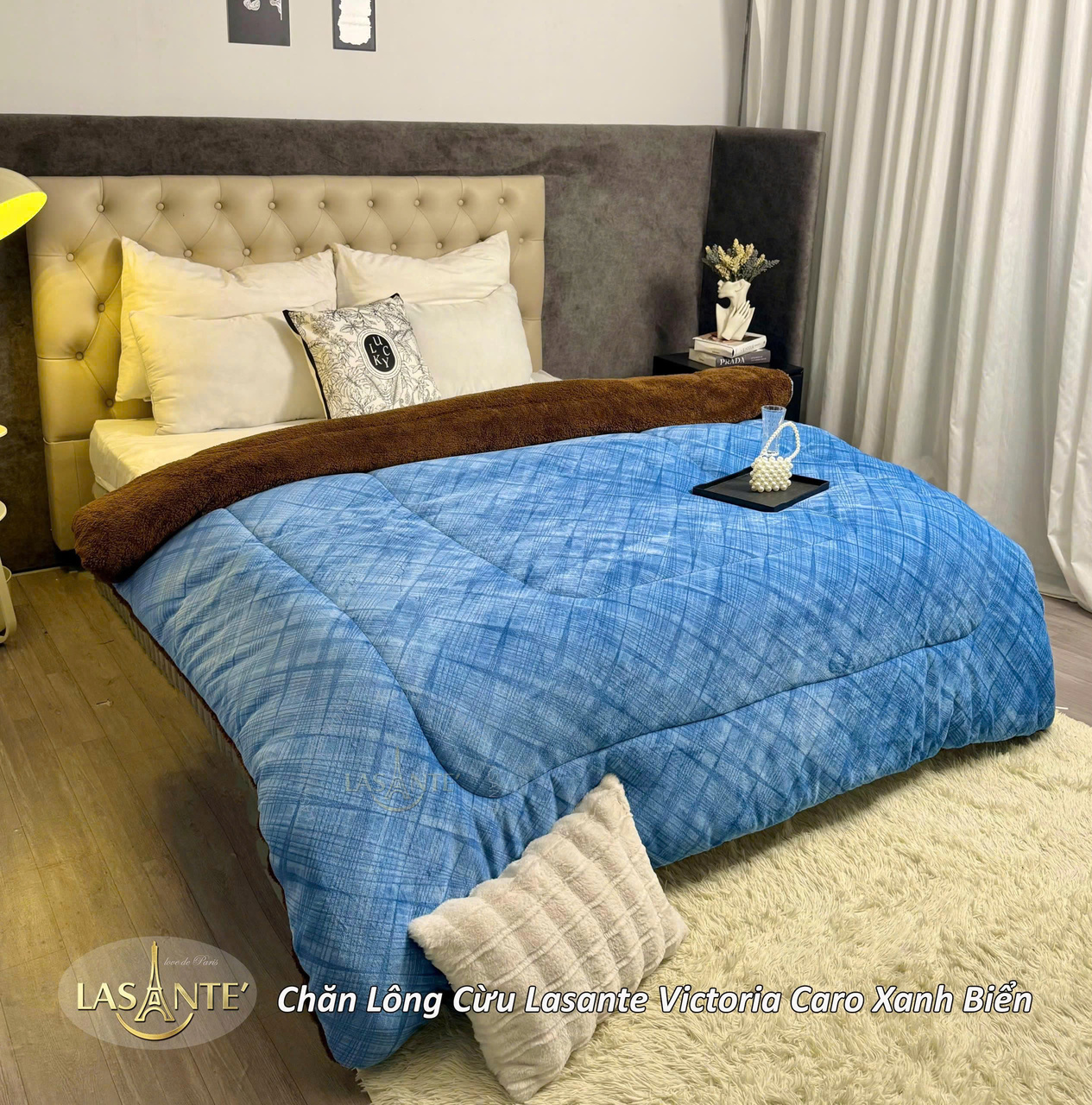 Chăn lông cừu Victoria màu Xanh Biển - sắc màu của người mệnh Thủy