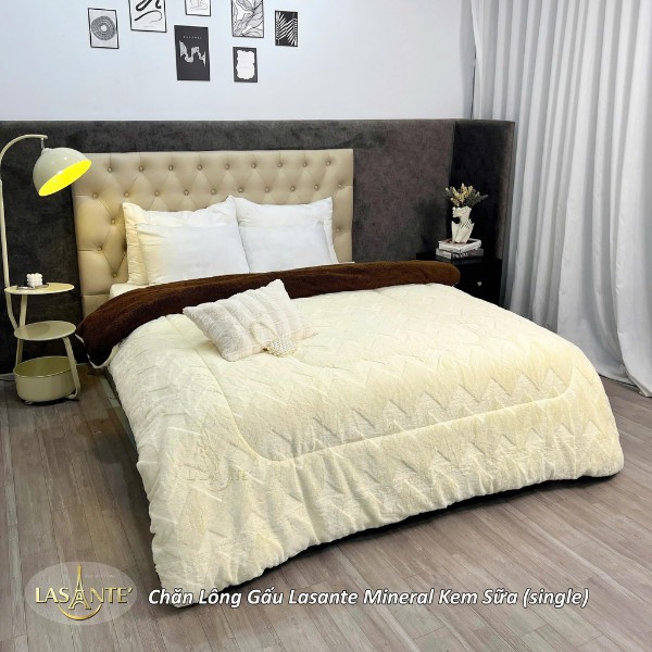 Chăn lông gấu Mineral màu Kem sữa phù hợp với phòng ngủ phong cách tối giản