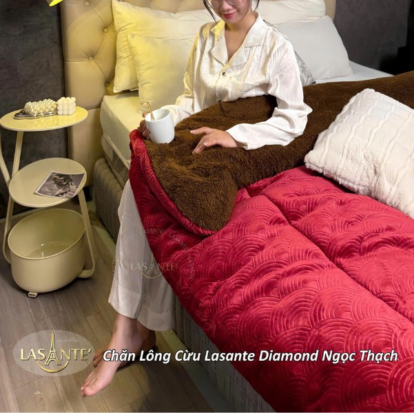 Chăn lông cừu Diamond Lasante là lựa chọn cao cấp bậc nhất cho mùa đông, được thiết kế dành cho những ai yêu thích sự sang trọng, ấm áp và độ bền vượt trội. Với cấu tạo 3 lớp hiện đại kết hợp chất liệu cao cấp, Diamond mang đến trải nghiệm ngủ êm ái, thoải mái và giữ nhiệt hoàn hảo trong những ngày rét đậm.