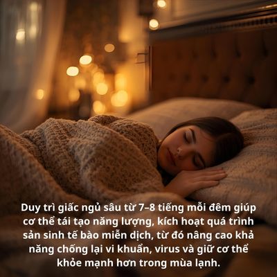 Thời tiết lạnh khiến cơ thể tiêu hao nhiều năng lượng để giữ ấm, đồng nghĩa với việc chúng ta cần giấc ngủ chất lượng hơn để phục hồi. Nếu bạn thường xuyên thức giấc giữa đêm, khó ngủ hoặc ngủ không sâu, rất dễ gặp tình trạng đau đầu, uể oải, tinh thần giảm sút. Ngủ sâu 7–8 giờ mỗi đêm là cách hiệu quả để giúp hệ miễn dịch hoạt động mạnh mẽ, giảm stress và cải thiện sức khỏe tổng thể.
