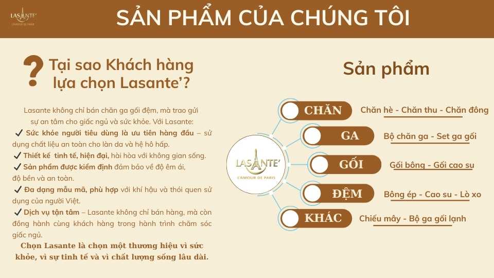 Lasante Việt Nam - không chỉ là một thương hiệu, mà là sự lựa chọn đồng hành lâu dài cho một cuộc sống khỏe mạnh, êm ái và chất lượng!